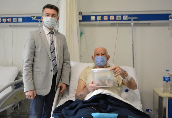 Denizli'nin Pamukkale ilçesinde yaşayan işçi emeklisi Halil Kul, idrar kaçırma ve ağrı şikayetiyle Pamukkale Üniversitesi Hastanesi'ne başvurdu. Üroloji kliniğinde muayene edilen Kul'un böbrek ve mesanesinde taşlar olduğu belirlendi. Halil Kul, yapılan tetkiklerin ardından Prof. Dr. Ali Ersin Zümrütbaş tarafından ameliyata alındı.