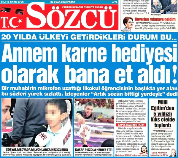 İstanbul Şişli'de kasapta müşterilere mikrofon uzatan bir televizyon muhabiri annesi ile alış verişe gelen ilkokul öğrencisine de mikrofon uzattığında ilginç bir cevap aldı. Henüz okula yeni başladığı anlaşılan A.G isimli çocuk, annesinin kendisine karne hediyesi olarak et aldığını iddia etti.
