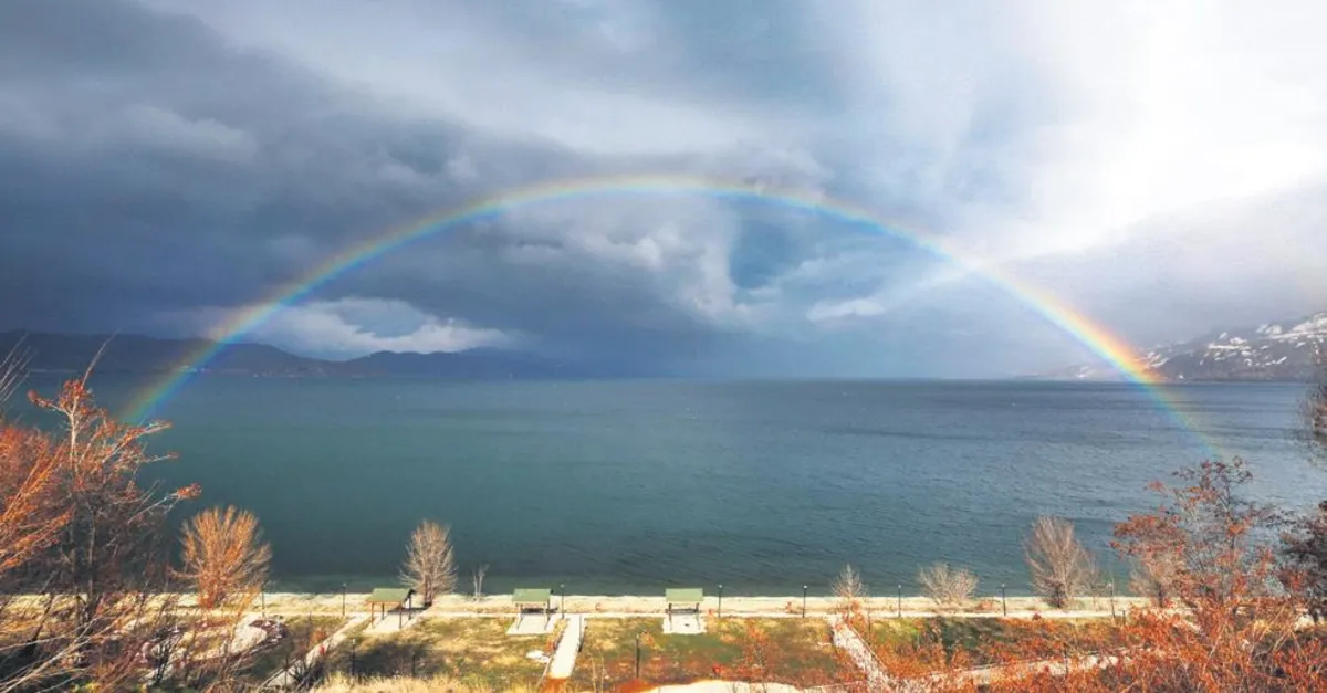 Elazığ'ın Sivrice ilçesinde sağanak sonrası Hazar Gölü'nün üzerinde gökkuşağı belirdi. İlçede aralıklarla yağan yağmurun etkisini kaybetmesinin ardından, Hazar Gölü'nün üzerinde gökkuşağı oluştu. Gökkuşağının göl manzarası ve yağmur bulutlarıyla oluşturduğu renk cümbüşünü ilçe sakinleri ilgiyle izledi. Bazı vatandaşlar, düşen yağmur damlacıklarında güneş ışınlarının kırılıp yansımasıyla gökyüzünde oluşan renkli, kemer biçimindeki bu görüntüyü, cep telefonlarıyla kaydetti. Gökkuşağı, bir süre sonra gözden kayboldu.