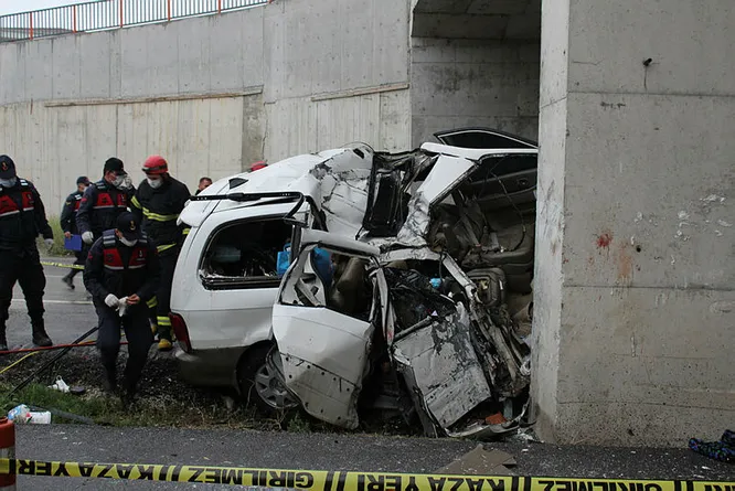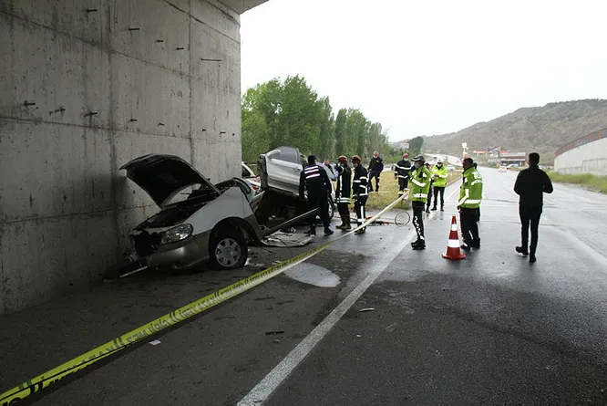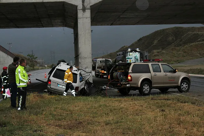 Kaza, akşam saatlerinde D-100 yolunun Samsun yönünde medyana geldi. 65 yaş ve üstü vatandaşlara getirilen seyahat izini kapsamında anne ve babasını memleketlerine götüren Ahmet Aygün yönetimindeki 06 GT 1371 plakalı otomobil, yağış nedeniyle kayganlaşan yolda kontrolden çıkarak, üst geçidin beton ayağına çarptı.