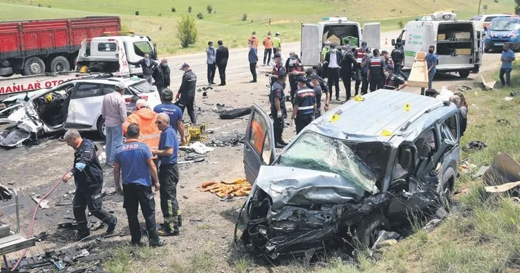 Sivas'ın Gölova ilçesinde şerit ihlali sonucu iki araç kafa kafaya çarpıştı. 3'ü çocuk 9 kişinin hayatını kaybettiği kaza, Sivas-Erzincan Karayolu'nun Gölova ilçesi Çataklı Köyü yakınlarında meydana geldi.