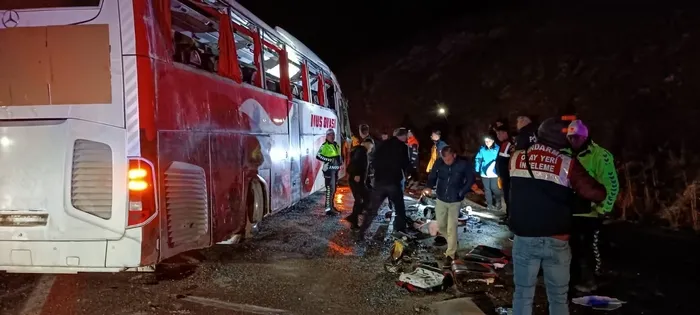 Karşı şeride geçen otobüste bulunan 38 yolcu yaralandı. İhbar üzerine olay yerine 112 AFAD, jandarma, polis ve itfaiye ekipleri sevk edildi.