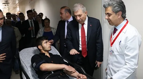 Sağlık Bakanı Ahmet Demircan, yaralıları hastanede ziyaret ederek, durumları hakkında bilgi aldı.