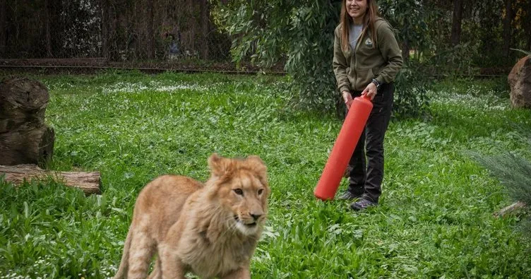 Doğal Yaşam Parkı'na getirildiğinde hiç etle beslenmediği belirlenen yavru aslan için özel beslenme programı uygulanıyor. Sabah ve öğle kırmızı et, kuru mama ve 1 su bardağı tavuk suyu ile beslenen aslan, akşam da haşlanmış tavukgöğsü ve kuru mama tüketiyor. İnsanlarla yakın ilişki kurduğu belirlenen aslan, veteriner hekimlerin gözetiminde basketbol topu, halat topu ve şamandıra gibi oyuncaklarla oynayarak günlerini geçiriyor.