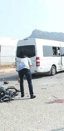 Kiriş Mahallesi Sahil Caddesi'nden Kemer yönünde seyreden Melih Cerit idaresindeki 07 KDH 76 plakalı motosiklet, karşı yönden gelen Ramazan Akbaba idaresindeki 07 EDK 01 plakalı minibüsle kavşakta çarpıştı. Çarpmanın etkisiyle minibüsün yan camına kafası çarpan ve yola savrulan motosiklet sürücüsü ağır yaralandı. 112 acil servis ambulansıyla hastaneye kaldırılan Melih Cerit, burada yapılan müdahalenin ardından Akdeniz Üniversitesi Hastanesi'ne sevk edildi. Kazadan yara almadan kurtulan minibüs sürücüsü ise işlemleri için polis merkezine götürüldü.