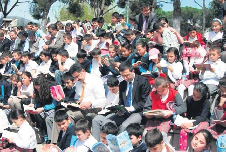 Aydın'ın Kuyucak ilçesinde düzenlenen okuma etkinliği ilginç görüntülere sahne oldu. Kitap okuma alışkanlığı kazandırmak için, Cumhurbaşkanı Abdullah Gül'ün himayelerinde, Kültür ve Turizm Bakanlığı ile Milli Eğitim Bakanlığı'nın koordinasyonunda 4 yıl önce başlatılan Türkiye Okuyor Kampanyası kapsamında, İlçe Milli Eğitim Müdürlüğü, önceki gün merkezle birlikte 5 belde ve tüm köylerde okuma etkinliği düzenledi. Saat 14.20'de eşzamanlı başlayan ve 40 dakika süren etkinliğe, 5 bin kişi katıldı. Stadyumdan çeşme başlarına kadar birçok farklı noktada toplanan binlerce insanın aynı anda kitap okuması ilginç görüntüler oluşturdu. Kahvehanelerde oyun oynayanlar bile, saat gelince oyuna ara vererek, kitap okumaya başladı. Etkinlikten haberi olmayanlar ise topluca kitap okuyanları görünce şaşkınlığını gizleyemedi.