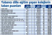 dille eğitim veren okullar taban puanlarını açıkladı. 8'inci sınıf Seviye Belirleme Sınavı (SBS) sonuçlarına göre öğrenci alan okulların ön kayıt başvuruları 8-10 Ağustos, kesin kayıtlar 11-12 Ağustos tarihlerinde yapılacak. Kontenjanların boş kalması halinde puanlar 15 Ağustos'ta yeniden düşürülerek 18-19 Ağustos tarihlerinde ikinci kesin kayıtlar gerçekleşecek. Üçüncü kayıt dönemi ise 22 Ağustos'ta başlayacak, 25 Ağustos'ta bitecek. Bu yıl özel eğitim kurumlarına 5 bin 88, yabancı dille eğitim veren yabancı okullara ise 1758 öğrenci kabul edilecek. Açıklanan taban puanlara göre SBS'nin en başarılı öğrencilerini almayı hedefleyen Amerikan Robert Lisesi 497.067 puanla en yüksek taban puanı açıkladı. Robert Lisesi'ni 495 puanla Üsküdar Amerikan Lisesi takip etti. Almanca eğitim yapan Avusturya Lisesi 490.275 taban puan açıklarken, bu okulu 490 taban puan açıklayan İtalyan Lisesi takip etti. Fransızca eğitim veren okullar ise 477 taban puan açıkladılar.
