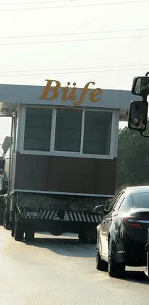 Yoğun araç trafiğinde üzerinde 'Büfe' yazan konteyneri gören sürücülerin dikkatini dağıtan bu taşıma şekli hem espri hem de eleştiri konusu oldu. Başka bir yere kurulmak üzere taşındığı anlaşılan büfeyi taşıyan kamyonet, Mersin yönüne doğru yoluna devam etti.