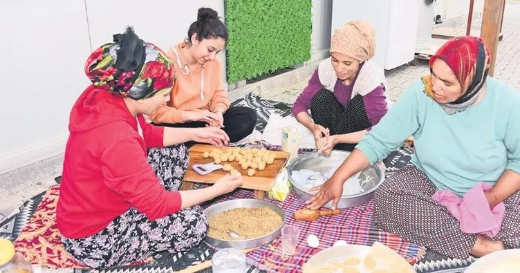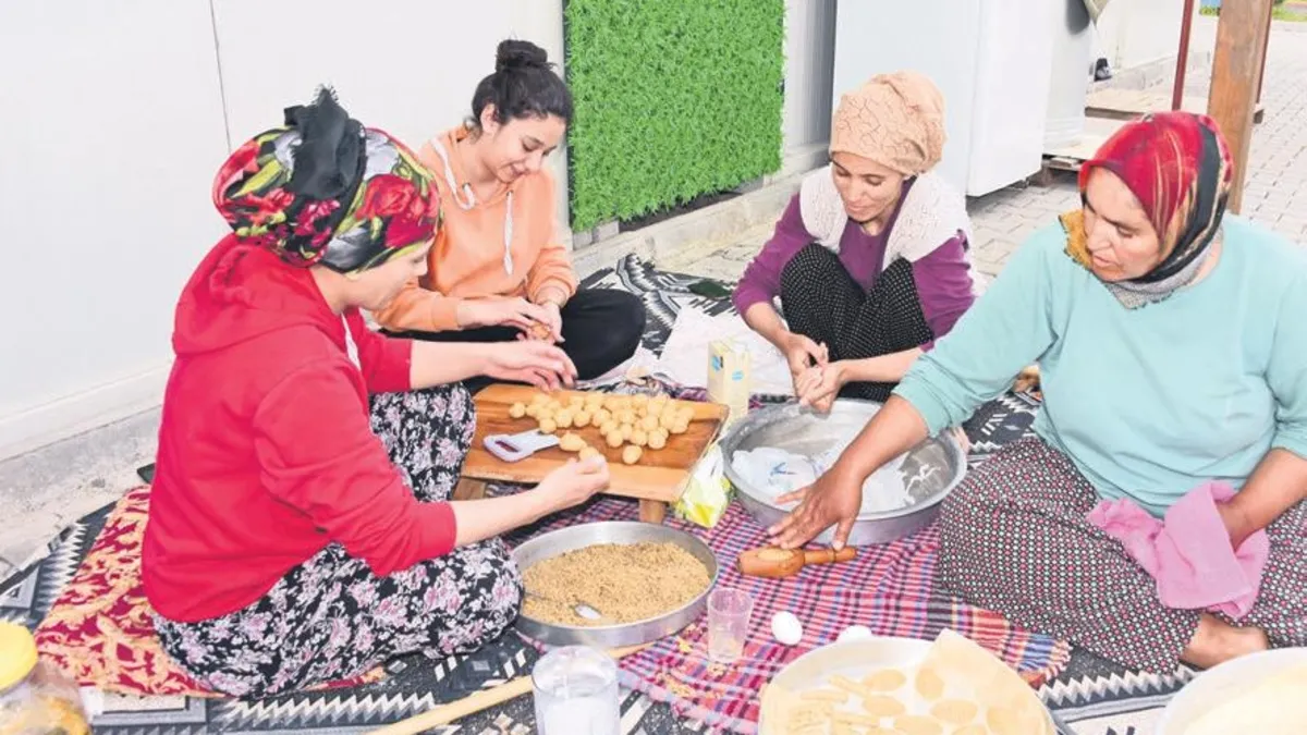 Kahramanmaraş'taki konteyner kentlerde de bayram hazırlığı var. Türkoğlu ilçesine bağlı Şekeroba Mahallesi'nde bulunan Şekeroba Geçici Barınma Merkezi'nde kalan depremzedeler hazırlıklara temizlikle başladı. Depremzede kadınlar imece usulü hamur açarak bayram için Maraş çöreği, tuzlu-şekerli kömbe ve gereviç yaptı. Depremzede Emine Gözübüyük (30) "İmece usulü yapıyoruz. Maraş çöreği ve bayram kömbesinin tuzlu ve şekerli iki çeşidini hazırladık. Herkesin bayramının iyi geçmesini temenni ediyorum" dedi. Depremzede Ayşe Yağcı ise "Cumhurbaşkanımız sayesinde iki bayram birden yaşayacağız. Yeni evlerimize yerleşmeyi sabırsızlıkla bekliyoruz" diye konuştu. Öte yandan konteyner kent önünda seyyar berberler de çocuklara bayram traşı yaptı.