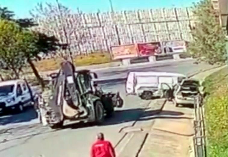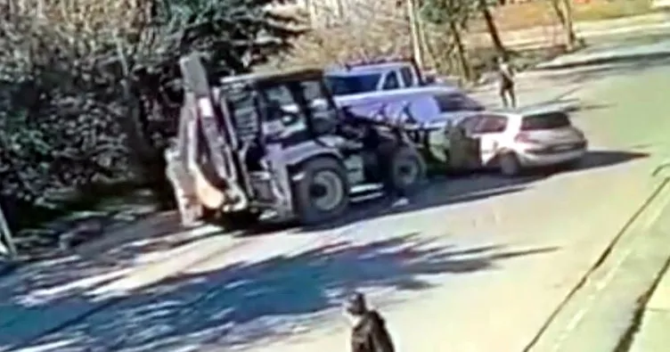 O sırada yoldan geçen bir kadın, kepçenin altında kalmaktan son anda kurtuldu. Kepçe operatörü olay sonrası kaçarken, araçlarda hasar oluştu.