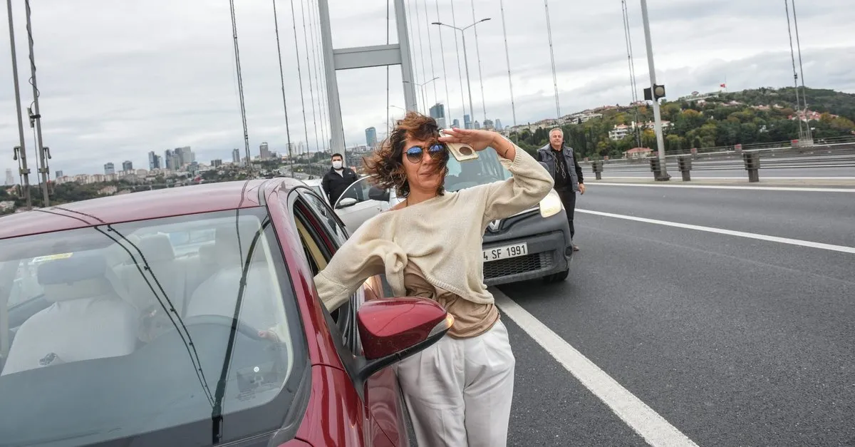 Köprü üzerinde araçlarını durduran vatandaşlar saygı duruşunda Ata'yı andı.