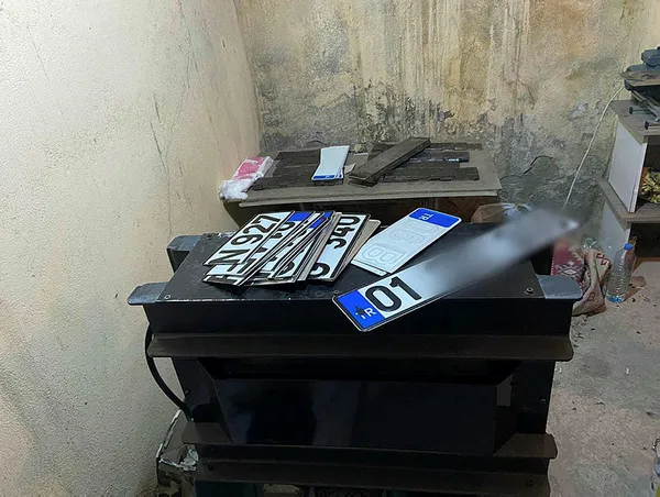 Bunun üzerine adrese operasyon düzenleyen polis, iş yerinin bodrum katında 233 tane sahte plaka, 408 adet harf ve rakam, sahte plaka yapımında kullanılan makine ve soğuk damga ele geçirildi.