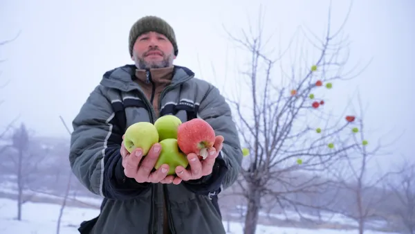 "Elimizde imkan olduğu sürece bunu yapmamız lazım. Bu elmaları taktığımızda hayvanlar en fazla 3- 5 gün yiyor. Çünkü hava şartlarının zorlu olduğu dönemdi kuşlar yiyecek bulamıyor. Kuşların yanı sıra bölgedeki ayılar da gelip bu elmalardan yiyor. Hatta tilki, sansar gibi hayvanların da elmalarla karnını doyuruyorum. Çok kar yağdığı zamanlar tavşanlar da yiyecek bulamayınca ağaçların kabuklarını kemiriyor. Bunu engellemek için de ökse otunu ağaçlara bağlıyorum. Tavşanlar gelip güzelce bu otu yiyor ve ağaçlara zarar vermiyor. Bu hayvanları öldürmek yerine onların açlığını telafi etmek gerekiyor. Hayvanlar karınlarını doyurunca, ben de mutlu oluyorum. Hayat paylaşmakla güzeldir."
