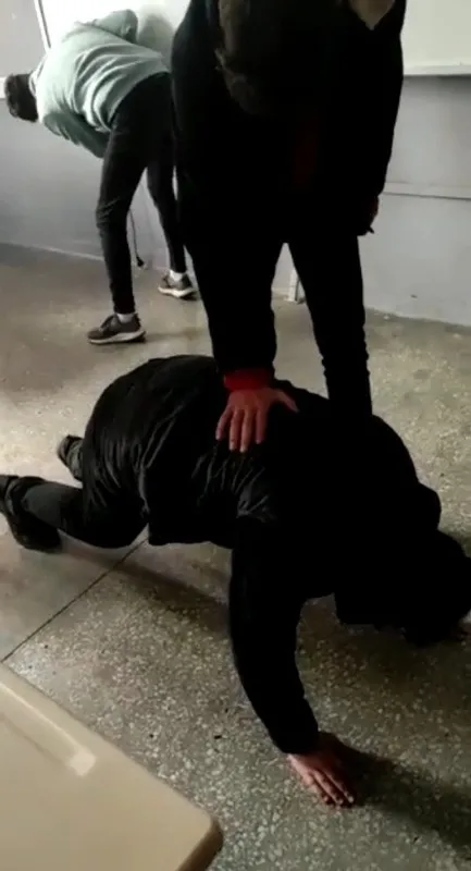 Bir öğrenci ise N.G.'nin başını ard arda beyaz tahtaya vurdu. Baskı uygulanan N.G.'ye zorla şınav çektirildi. Ortalarına alan öğrenciler oynaması konusunda da N.G.'ye baskı yaptı.