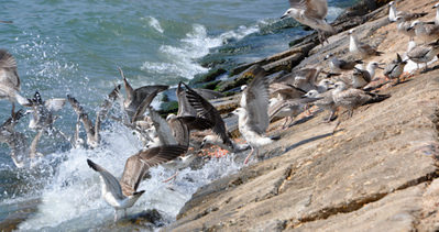 Tekirdağ merkez ilçe Süleymanpaşa sahilde balıkçıların denize attığı balıkları yemek için martılar birbirlerine üstünlük sağlamaya çalıştı. Birbiriyle yarış içinde olan martılar güzel görüntüler oluştururken, martıların balık kavgası bazı vatandaşlar tarafından fotoğraf çekilerek ölümsüzleştirildi.