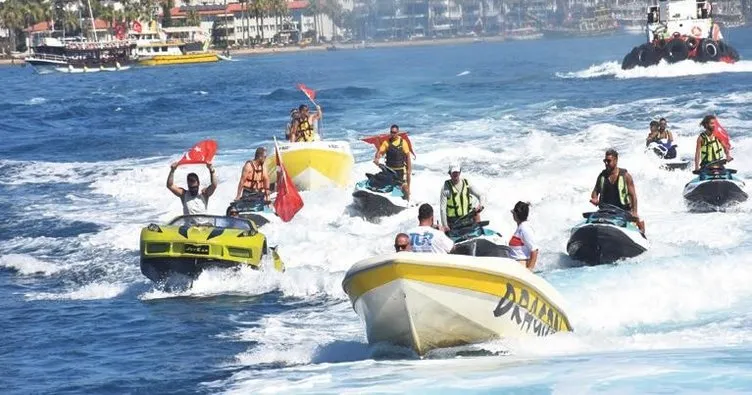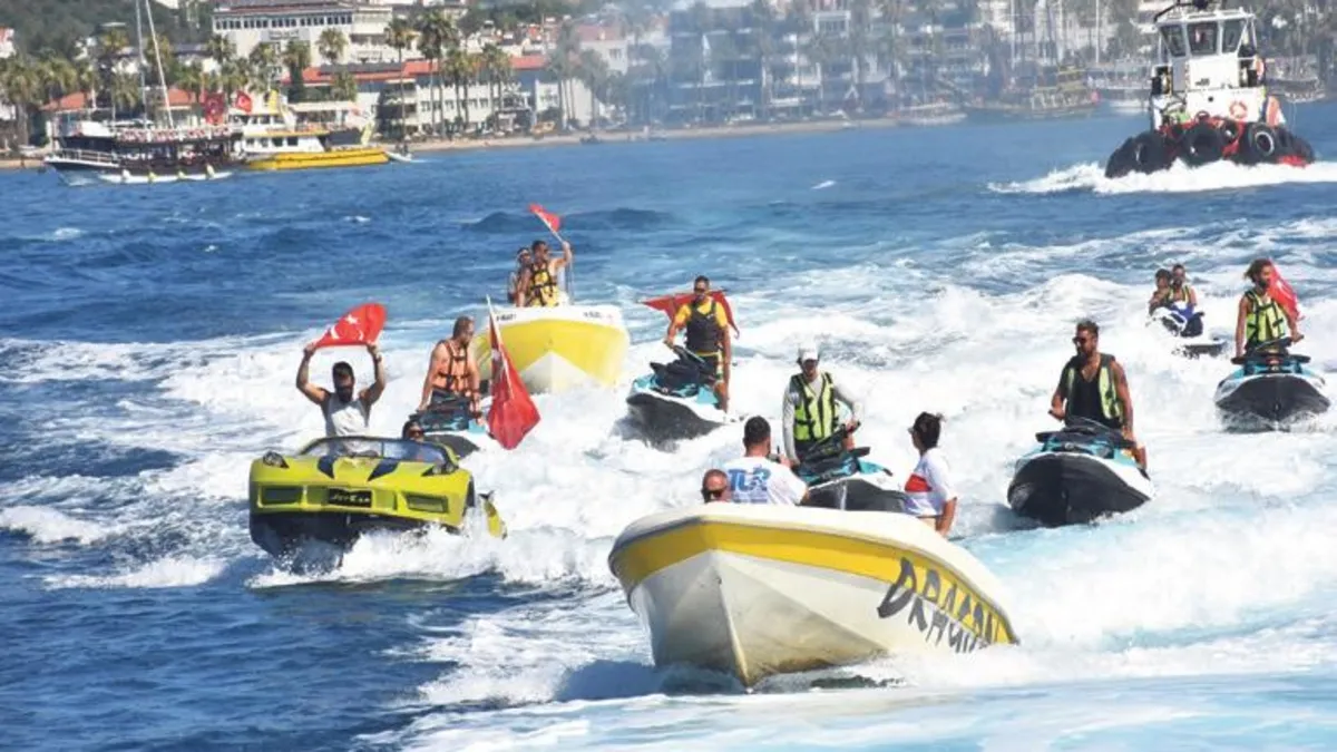 Sahil güvenlik ekipleri ve su sporları merkezi üyeleri Marmaris ve Bodrum'da denizde Türk bayraklı, jet skili kutlama yaptı. Fethiye Ölüdeniz Kooperatif üyeleri tur teknelerinin önünde Türk bayrağı açtı.