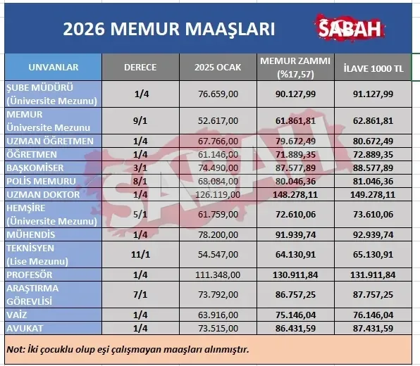 MEMUR ZAMMI HESABINDA SON TABLOLAR: 2026'ta memur maaşları ne kadar olacak? Polis, öğretmen, hemşire...