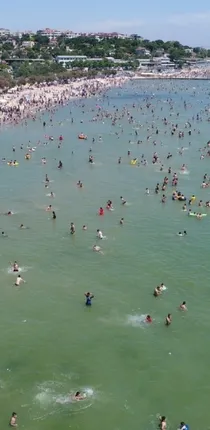 İstanbul'da havaların ısınmasıyla çok sayıda vatandaş plajlara koştu. Vatandaşların ücretsiz olarak girdiği Florya'daki Menekşe Plajı 3 günlük bayram tatiliyle birlikte doldu taştı. Sıcak havalardan bunalan çok sayıda vatandaşın sahilde oluşturduğu yoğunluk drone ile görüntülendi. Havadan çekilen görüntülerde sahildeki aşırı yoğunluk gözler önüne serildi. Sahil şeridindeki kimi gençler kendisi kuma gömerek güneşin tadını çıkarırken kimi vatandaşlar ise kumsala çadır kurdu. Bir vatandaşın kendini kuma gömerek ayakkabısıyla mezar taşı yapması vatandaşların ilgini topladı. Bazı gençler ise plajın içindeki dereye köprü üzerinden atlamak için birbiriyle yarıştı.