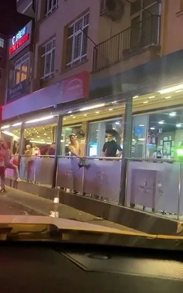 Etraftaki kişilerin kendisine yaklaşmasına izin vermeyen şahıs, masadaki bardak, tabak gibi eşyaları yola fırlatarak kırdı. Bu sırada trafik ışıklarında bekleyen bir araca bardak fırlatan şahıs, araçtaki kişilerin tepki göstermesi üzerine restoranın camından atlayarak öfkeyle aracın yanına gitti.