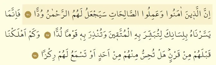 İnne-lleżîne âmenû ve'amilû-ssâlihâti seyec'alu lehumu-rrahmânu vuddâ(n)