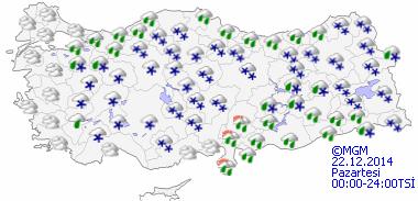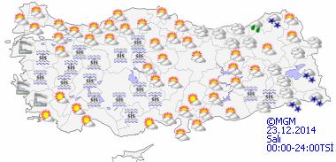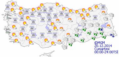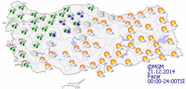 Meteoroloji Genel Müdürlüğü'nden yapılan son değerlendirmelere göre; Güneydoğu Anadolu, Hatay ve Şırnak çevrelerinin yağmur ve sağanak, Bitlis ve Hakkari ile Van'ın güney kesimlerinin karla karışık yağmur ve kar yağışlı olacağı olması bekleniyor. Bu sabah ve gece saatlerinde Marmara ile iç ve doğu kesimlerde yer yer pus ve sis hadisesi, Doğu Karadeniz'in iç kesimleri ile Doğu Anadolu'nun doğusunda buzlanma ve don olayı görüleceği tahmin ediliyor.