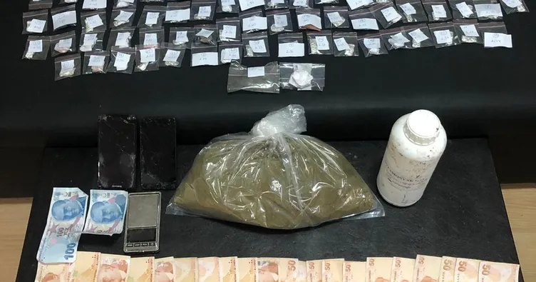 Güven Timleri polislerinin binanın bahçesinde yaptıkları aramalarda; Plastik kova içerisinde 1 kilo 349 gram toz kubar, 85 parça alüminyum folyoya sarılı vaziyette 114,34 gram toz kubar, 19 parça beyaz kağıda sarılı vaziyette 38,14 gram gelen skunk, 2 parça şeffaf poşete sarılı 6,65 gram esrar, 1 parça siyah poşete sarılı 3,89 gram eroin, 1 parça beyaz peçeteye sarılı 3,33 gram taş kokain, 1 parça şeffaf poşete sarılı 5,15 gram marok, Uyuşturucu imalatında kullanılan 900 gram sıvı amonyak, 1 adet hassas terazi, 2 adet cep telefonu, Uyuşturucu madde ticaretinden elde edildiği değerlendirilen 2 bin 50 lira para ele geçirildi.