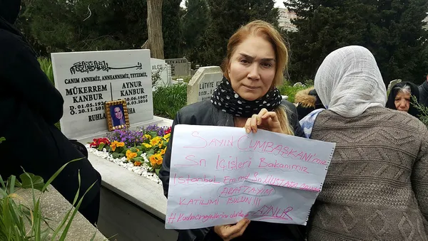 Aynur Kanbur, ölüm yıl dönümü olan dün mezarı başında anıldı. Anma törenine Kanbur'un ablası Dilek Kıymış, Mezdeke üyelerinden Dilek Maltepe, Fatih Ürek'in ablası Selvi Ürek ve yakınları katıldı. Abla Dilek Kıymış şunları söyledi: "Kardeşim melek gibi insandı. Katil 2 yıldır elini kolunu sallayarak dolaşıyor. Silahı birinden almıştır. O katilin sırrını paylaştığı biri, birileri vardır. Onlara yalvarıyorum. Vicdanlarının sesini dinlesinler ihbar etsinler."