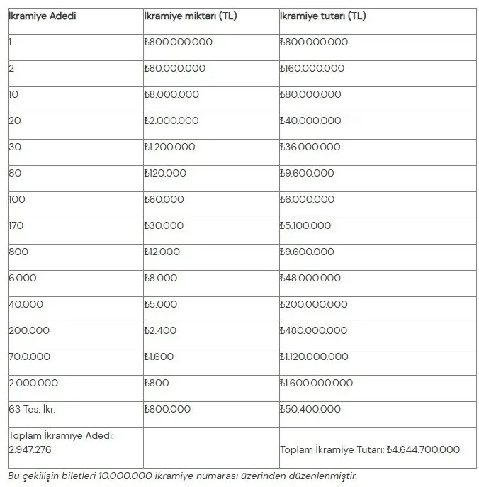 İşte ikramiye tablosu: