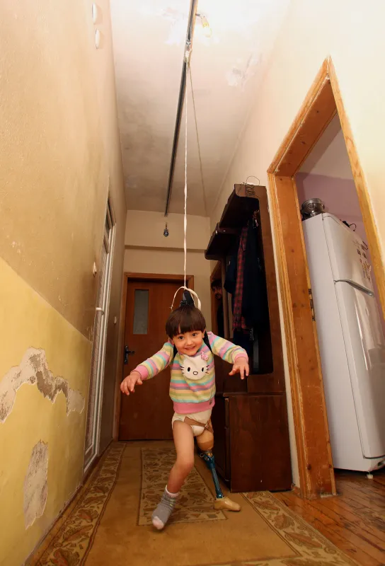 Bir bacağı kesik olan Özge'nin, yürüyemediği için sokakta oynayan çocuklara bakıp ağlaması, babası Ali İhsan Yıldırım'ın yüreğini sızlattı. Ali İhsan Yıldırım, ekonomik sorunlar nedeniyle fizik tedaviye götüremediği için yürümeyi öğrenemeyen kızına, evde 150 liraya yaptığı ve tavana taktığı bir düzenekle yürümeyi öğretmeye çalıştı.