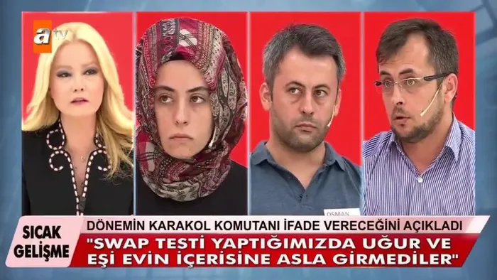 Müge Anlı'nın 24 Haziran Perşembe günkü canlı yayınında dönemin karakol komutanının ifade vereceği açıklandı. O gün yaşananları anlatmak isteyen 2 kişi olduğunu belirten Müge Anlı, birinin o dönem orada er olarak çalışan kişi olduğunu ve röportaj verdiğini belirtirken diğerinin de ifadesi alınmayan kişinin ifade vermek istediğine dair açıklamalar oldu. Astsubay Cemil Aksoy'un, "Ben şu saatten sonra ifade vermek istiyorum, alırlarsa" ifadesinin olduğunu belirtti. Şüpheler, sorular ve iddialar devam ederken Büyükşen çiftinin katilinin kim olduğu merak ediliyor. Canlı yayında tüm detaylar aydınlatılırken sıcak bir gelişme de yaşandı. "Swap testi yaptığımızda Uğur ve eşi evin içerisine girmedi" dendi. "Normal bir akrabalık ilişkisi değildi" ifadesi verilirken dönemin jandarma komutanından çarpıcı iddialar geliyor. Gözler Uğur'a çevrilirken son gelişmeler takip ediliyor.