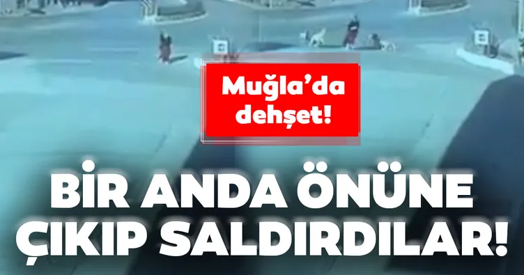 Muğla'nın Milas ilçesinde dün gündüz saatlerinde ürkütücü anlar yaşandı. Bir kadın sokakta yürüdüğü sırada bir anda çok sayıda köpeğin saldırısına uğradı.