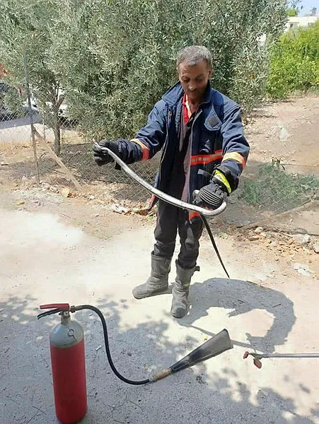 Eve gelen Mersin Büyükşehir Belediyesi Davultepe İtfaiye Grup Amirliği ekibi, uzun uğraşlar sonunda yılanı yakalamayı başardı.