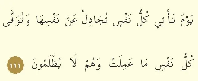 111. Ayet: Yevme te'tı küllü nefsin tücadilü an nefsiha ve tüveffa küllü nefsim ma amilet ve hüm la yuzlemun