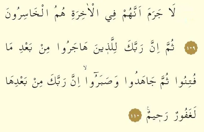 110. Ayet: Sümme inne rabbeke lillezıne haceru mim ba'di ma fütinu sümme cahedu ve saberu inne rabbeke mim ba'diha le ğafurur rahıym
