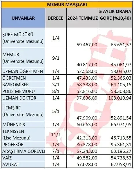 Not: İki çocuklu olup eşi çalışmayan memur maaşları esas alınmıştır.