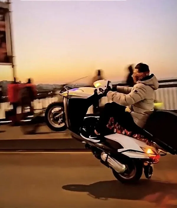 Sivil trafik ekiplerini harekete geçiren görüntüler sosyal medya üzerinden yayınlandı. Motosikleti tek teker olarak ve omuzunda yolcu ile sürerek trafik güvenliğini tehlikeye attığı, trafiğin doğal akışına aykırı araç kullandığı tespit edilen motosiklet sürücüsü Tamer T. ve yolcu konumunda bulunan Emre A. yakalandı.