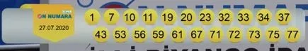 Milli Piyango İdaresi (MPİ) 950. hafta On Numara çekiliş sonuçları: 23 - 75 - 34 - 67 - 20 - 72 - 71 - 32 - 43 - 77 - 37 - 19 - 61 - 1 - 73 - 56 - 59 - 53 - 33 - 10 - 7 - 11