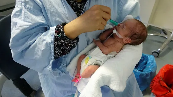 BEBEĞİNİ İLK DEFA KUCAĞINA ALDI