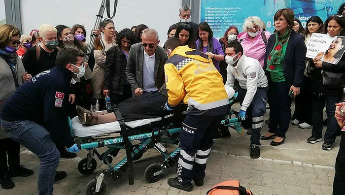 Adliye önünde açıklama yapan Sıddık Gültekin, "Yürüyüş sırasında eşimin tansiyonu yükseldi, şu an hastanede. Serum veriyorlar, inşallah iyi olur" diye konuştu.
