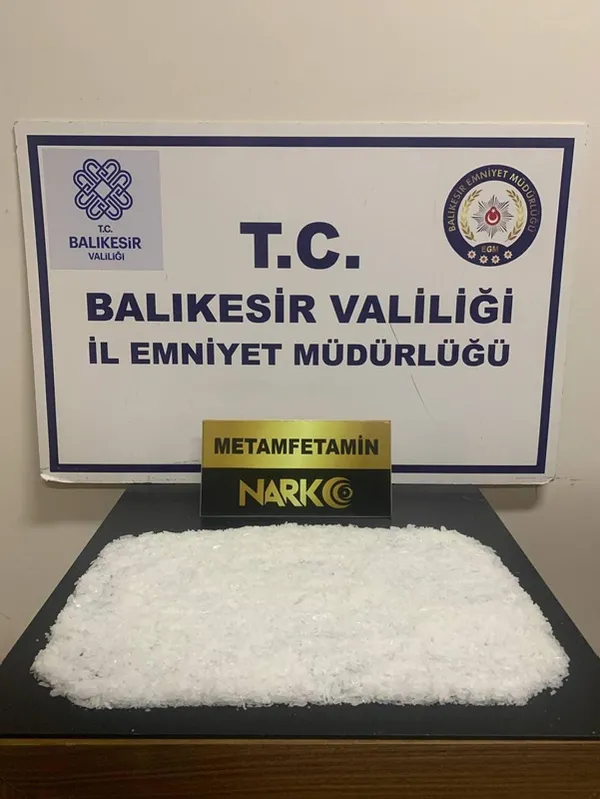 Ekipler, şüpheli şahıslar ve kullandıkları araçları takibe alıp Edremit girişinde yakaladı. Yapılan aramalarda 3 parça halinde daralı ağırlığı 1 kilo 237 gram metamfetamin maddesi ele geçirildi.
