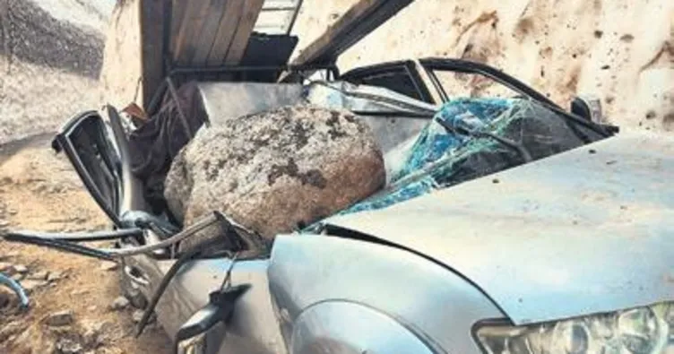 Kopan dev kaya parçası, üzerine düştüğü aracı hurdaya çevirdi. İhbar üzerine bölgeye AFAD, ARAF ve çok sayıda ambulans sevk edildi. Araçtaki Mustafa Z.'nni olay yerinde hayatını kaybettiği belirtilirken, yaralanan 2 kişi hastaneye kaldırıldı.