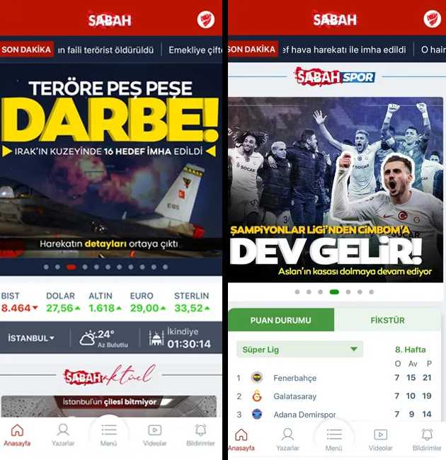 Türkiye ve dünyadan son dakika haberlerini uygulama üzerinden en doğru ve hızlı şekilde okuyabilirsiniz. Gündem, Ekonomi, Spor, Magazin ve Yaşam kategorileri başta olmak üzere sabah.com.tr'ye eklenen tüm sıcak haber ve son dakika gelişmelerinden anbean haberdar olabilir, anlık güncellenen haberler sayfası ve gündeme ilişkin özel başlıklara sabah.com.tr uygulaması ile ulaşabilirsiniz.