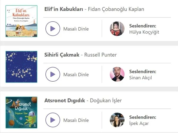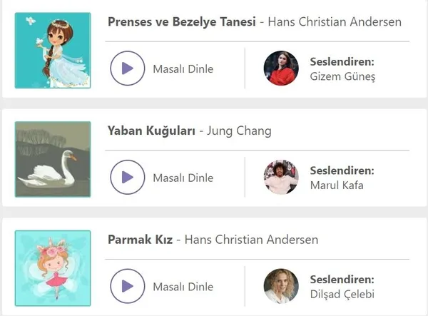 www.sabah.com.tr/masal-dinle sayfasında şu masallar seslendirildi.