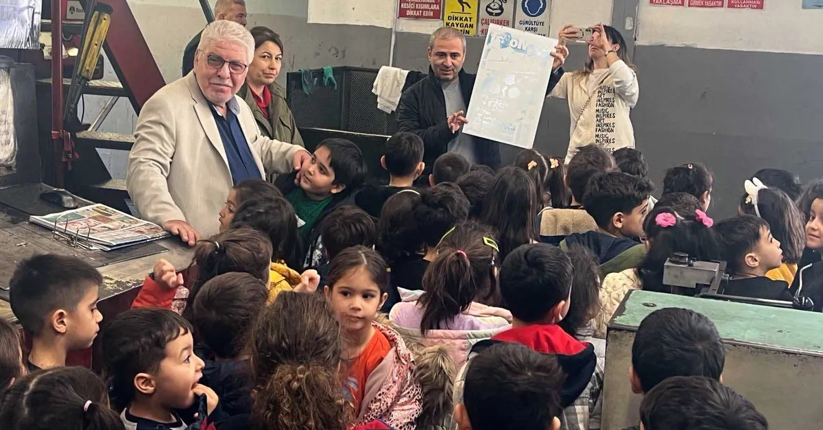 Öğretmenleri ile birlikte SABAH Gazetesi Bölge Temsilcisi Ersin Ramoğlu'nu ziyaret eden minikler, daha sonra Matbaa Müdürü Gültekin Mındık eşliğinde baskı tesislerini, dağıtım ve haber merkezini gezdi.