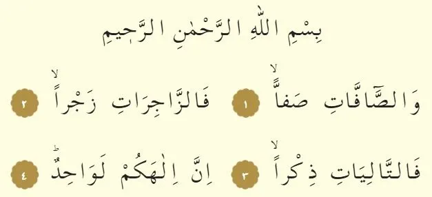 1, 2, 3, 4. Ayet: Sıra sıra dizilmiş olanlara, (yanlışları) engellemeye çalışanlara ve anmak için okuyanlara andolsun ki kuşkusuz tanrınız bir tektir.