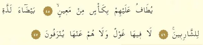 47. Ayet: İçenlere dokunmaz, ondan sarhoş da olmazlar.