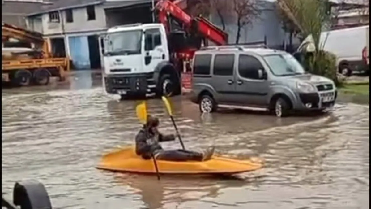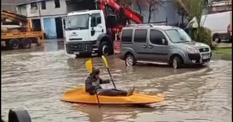 Etkili olan sağanak nedeniyle Seyhan ilçesindeki Yeni Metal Sanayi Sitesi'nde de yolları su bastı. Sitedeki altyapı sorununa dikkat çekmek isteyen bir kişi, su birikintisinde kanoyla gezdi.