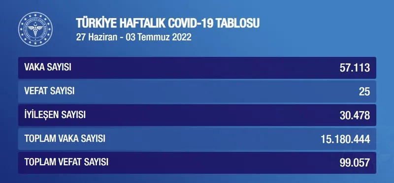 Sağlık Bakanlığı haftalık korona tablosu verileri ve tüm bilgiler şöyle;