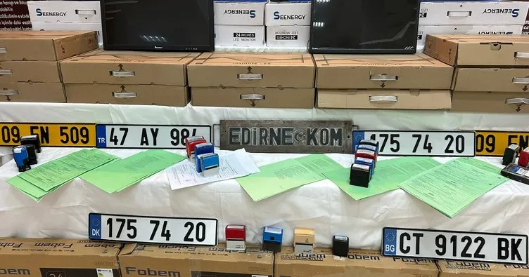 Edirne İl Emniyet Müdürlüğü, kentte sahte plaka ve araçların yurtdışı çıkışları için kullanılan yeşil sigorta, sahte dolaşım belgesi gibi bir resmi belgelerde sahtecilik yapan çete üyelerini takibe aldı. Edirne KOM ve İstihbarat ekipleri Edirne Cumhuriyet Başsavcılığı talimatıyla harekete geçti. Ekipler, şüphelilerin bulunduğu adreslere eş zamanlı operasyon düzenledi. Ekipler 3 iş yeri ve 1 ikamete eş zamanlı düzenlediği operasyonda, 6 adet sahte olduğu değerlendirilen Türk ve yabancı plaka, plaka basımında kullanılan 60 tonluk pres, plaka boyama makinesi, dijital baskı makinesi, 250 adet çift halinde plaka basımında kullanılan harf ve rakam kalıpları, farklı firmalara ait kaşe, 45 adet sahte yeşil sigorta yapımında kullanılan yeşil renkli boş sayfa, 16 adet sahte yeşil sigorta, 5 adet yeşil kart sigorta poliçesi, 3 adet sahte transit refakat belgesi, 7 adet sahte dolaşım belgesi bir çok sahte evrak ele geçirildi.