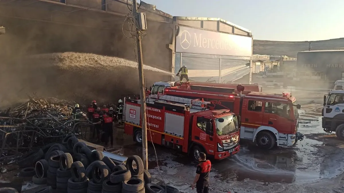 Şanlıurfa'nın Eyyübiye İlçesine bağlı Kadıkendi Mahallesi'nde bulunan sanayi Sitesi'nde bir hırdavat deposunda henüz belirlenemeyen bir sebepten dolayı yangın çıktı.